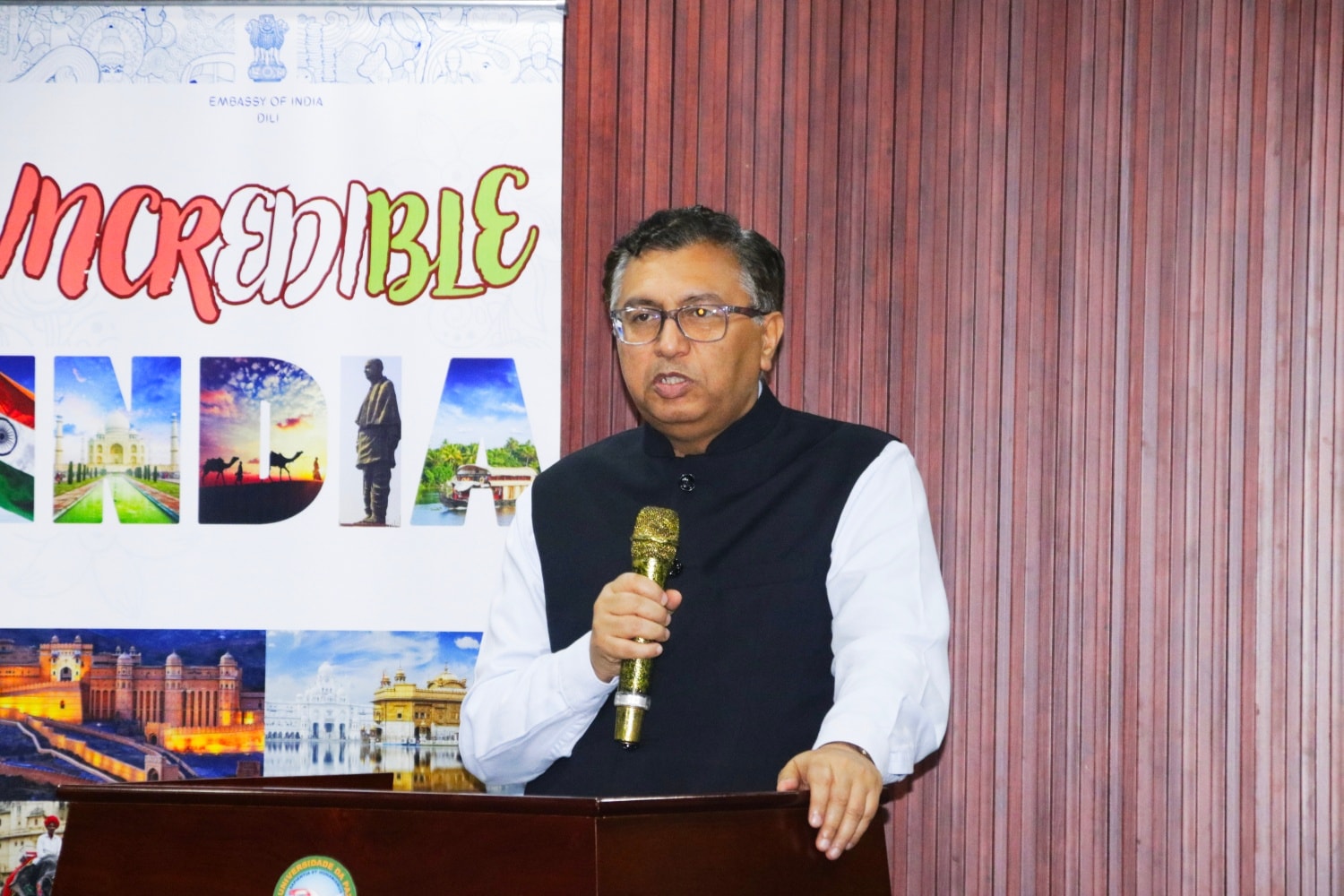 During the celebration of the National Anthem (VANDE MATARAM) of India, MBBS students also performed cultural dances, sang music and reflected including opening a video of the history of India during the invasion. Present at the event, Indian Ambassador to Timor-Leste, Madan Kumar Ghildiyal, with the entire delegation, University Senate Structure, Faculty Senate, Director, Heads of Units, including MBBS students at the University of Peace.